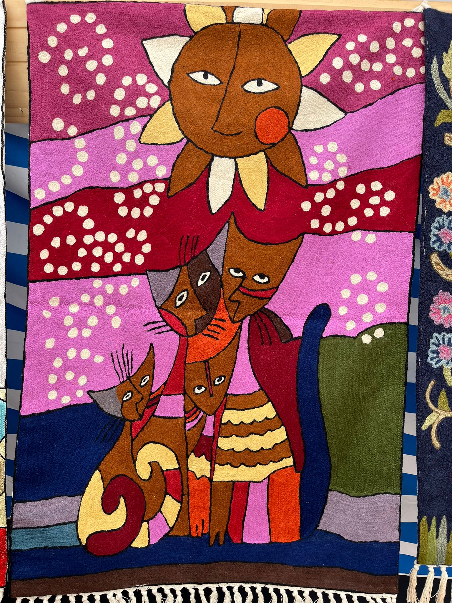Dywan z Kashmiru z motywami słońca i kotów, wełna