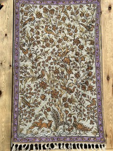 Dywan w całości wykonany ręcznie w Kashmirze, północne Indie, haftowany nicią jedwabną/ SILK.