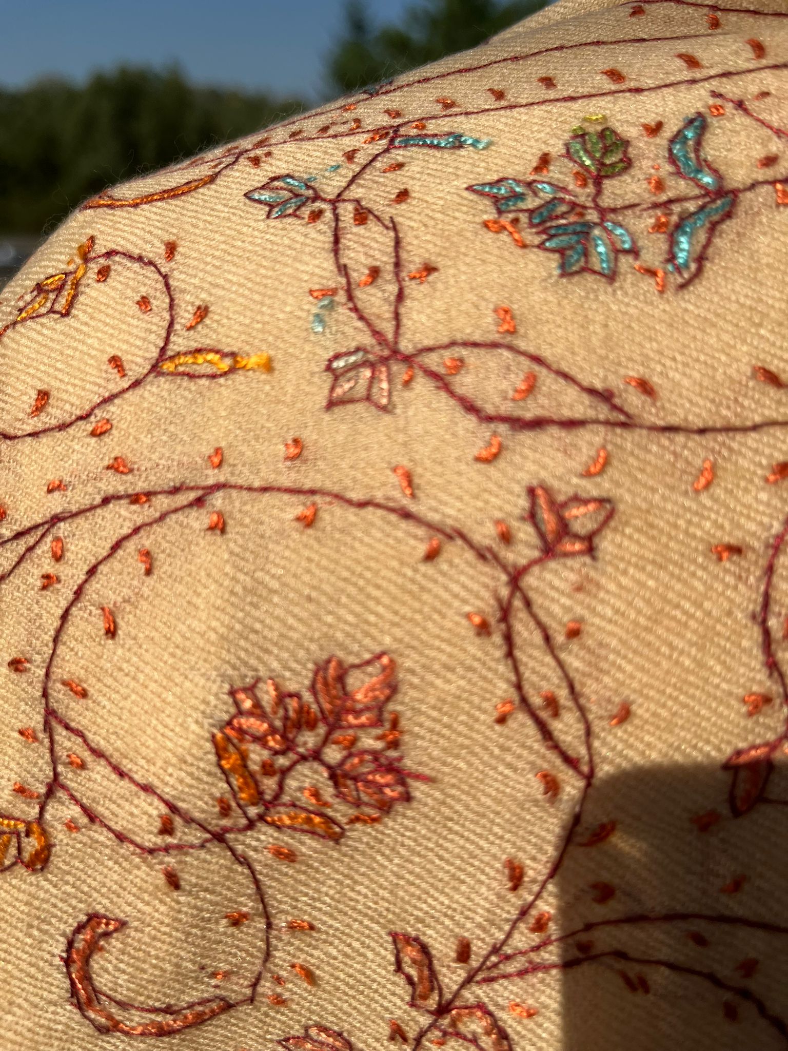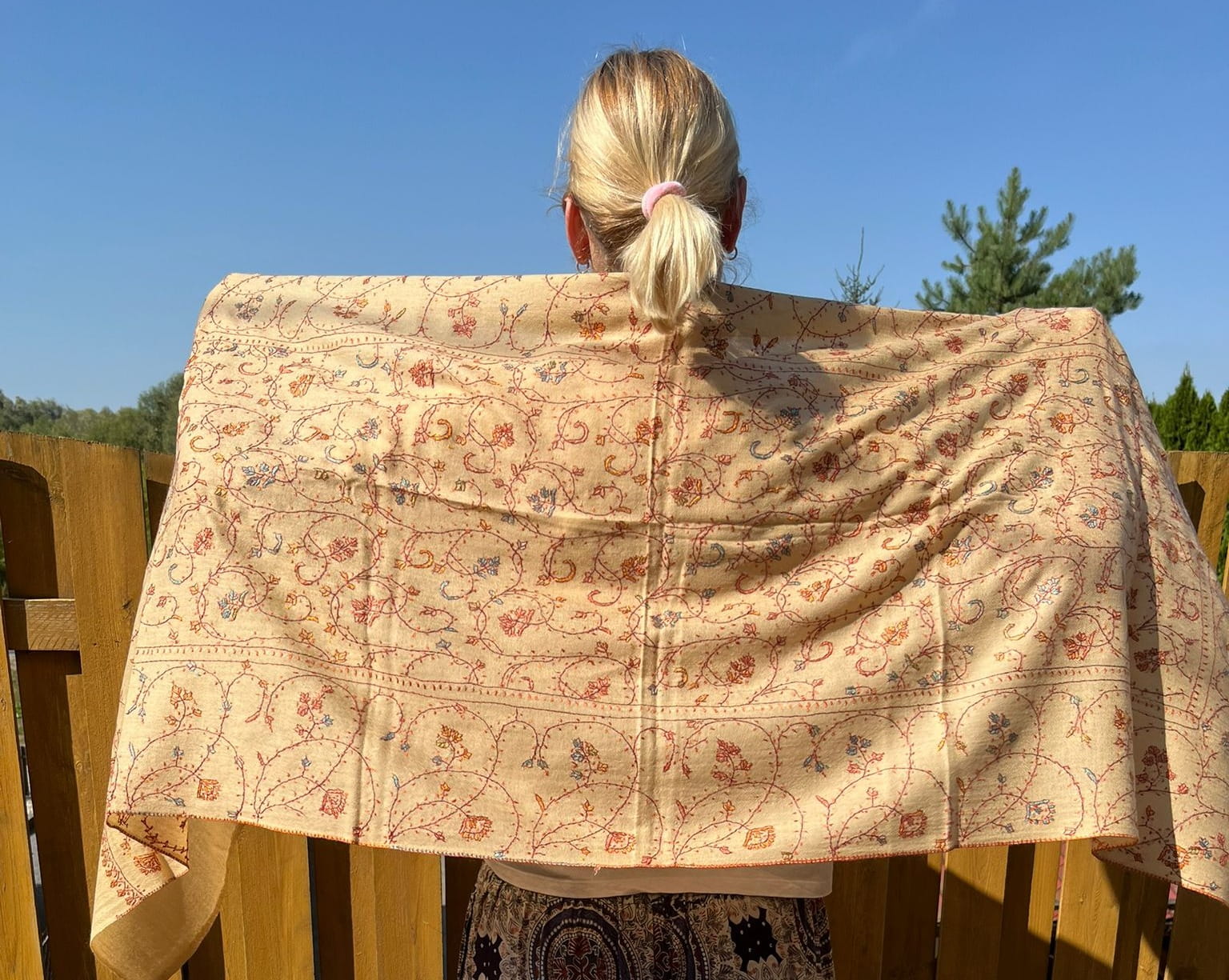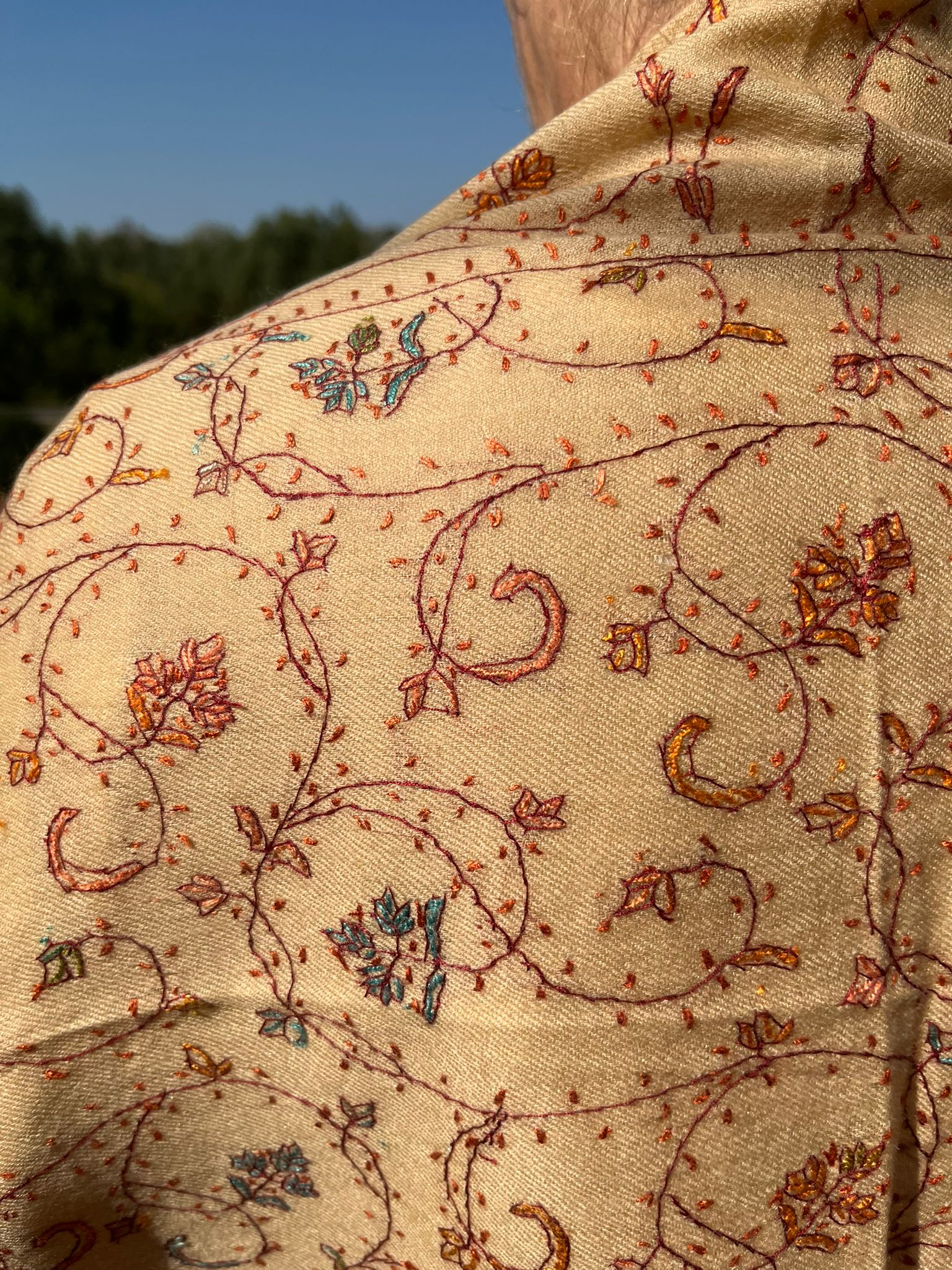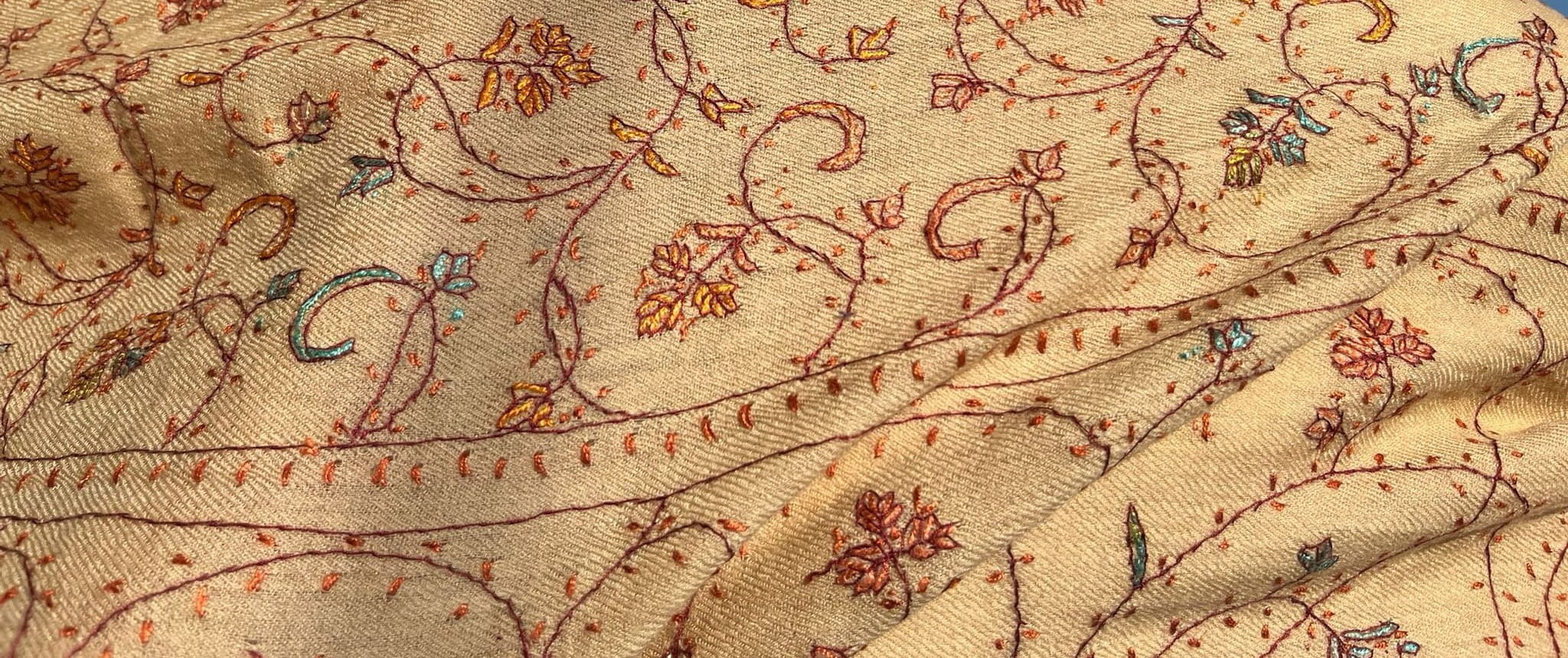 Szal kaszmirowy kremowy, haft