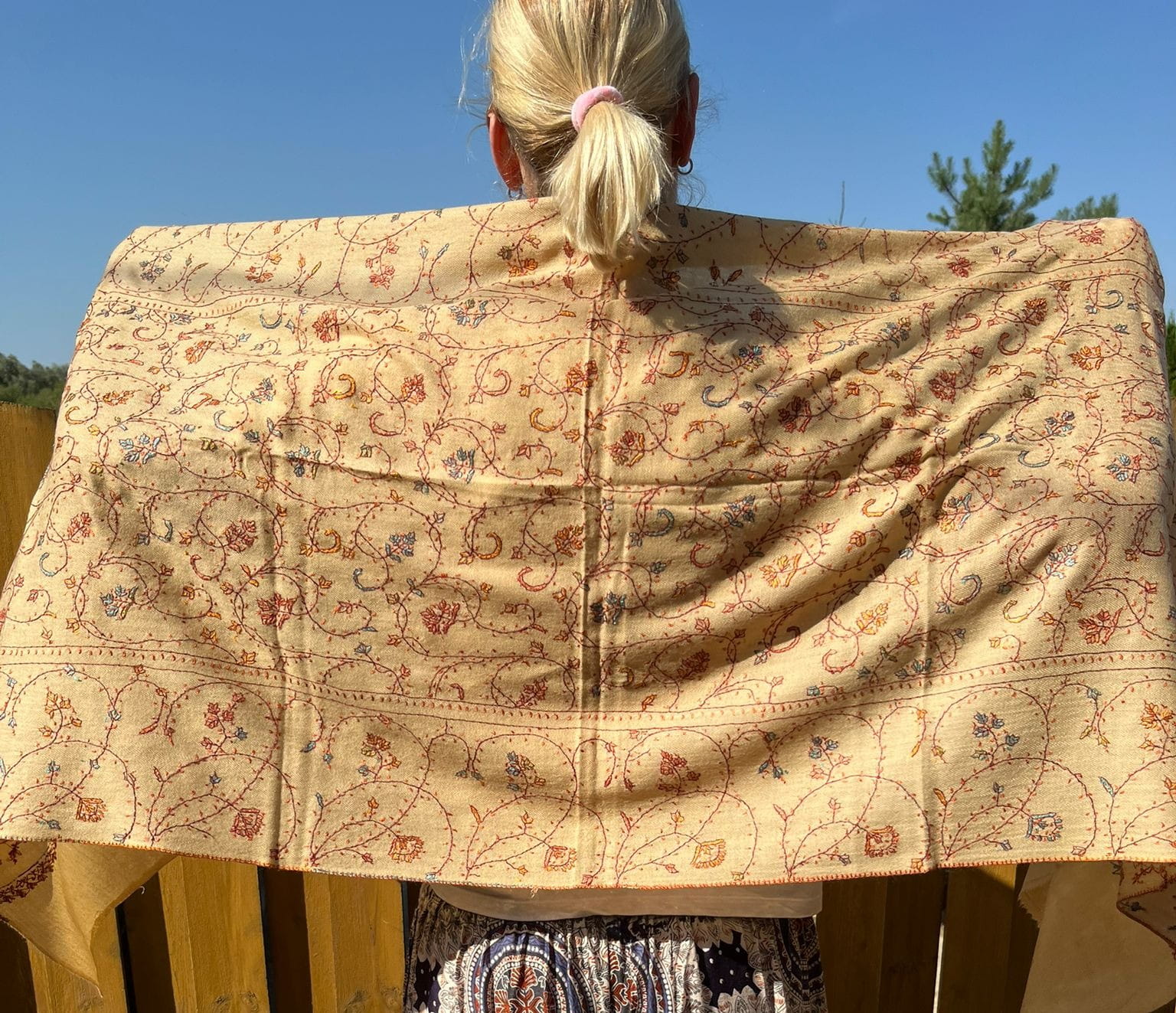 Szal 100% kaszmir wykonany jest w całości ręcznie z wełny kóz kaszmirskich hodowanych w Kashmirze, w północnych