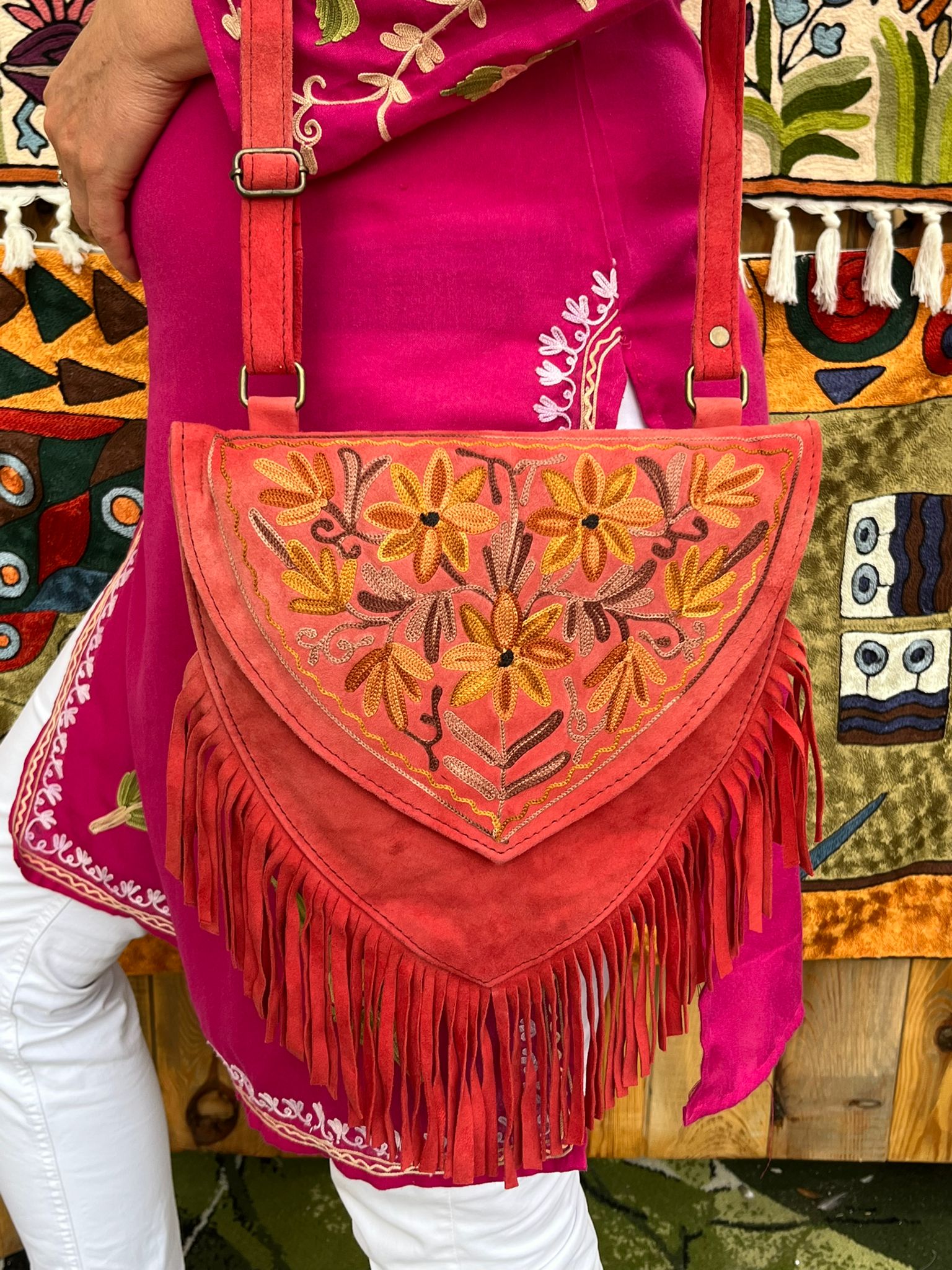 Torebka zamszowa czerwona boho