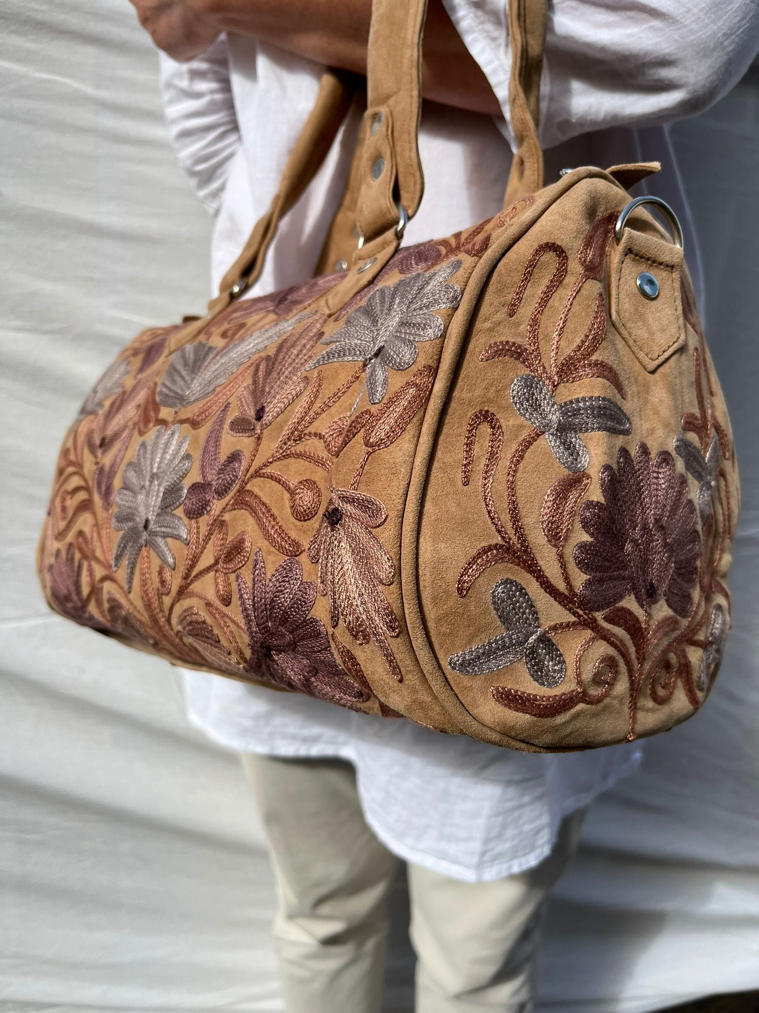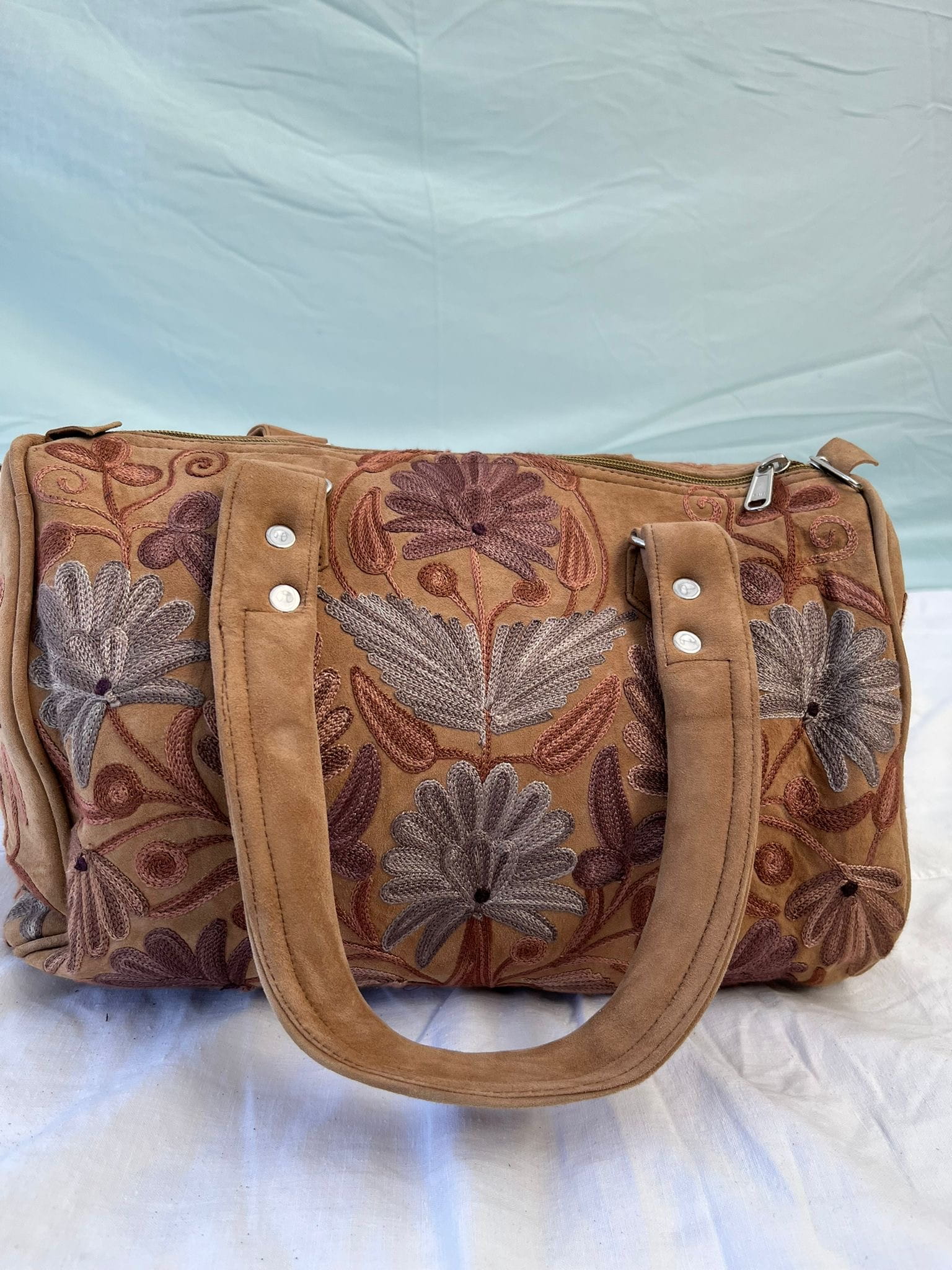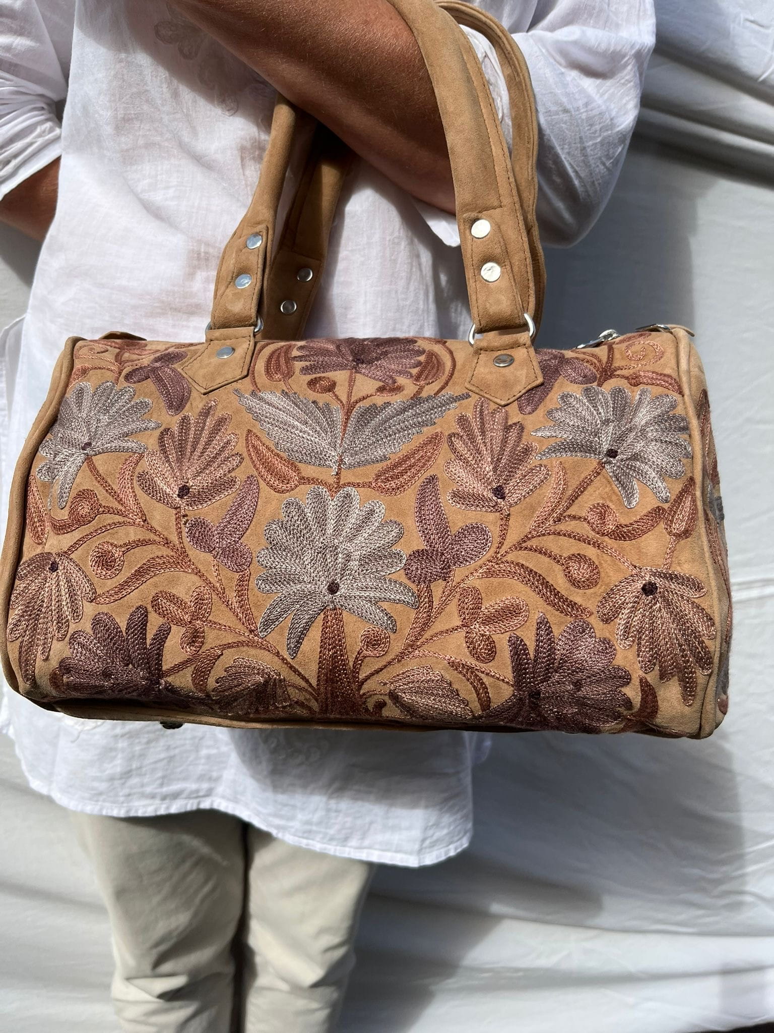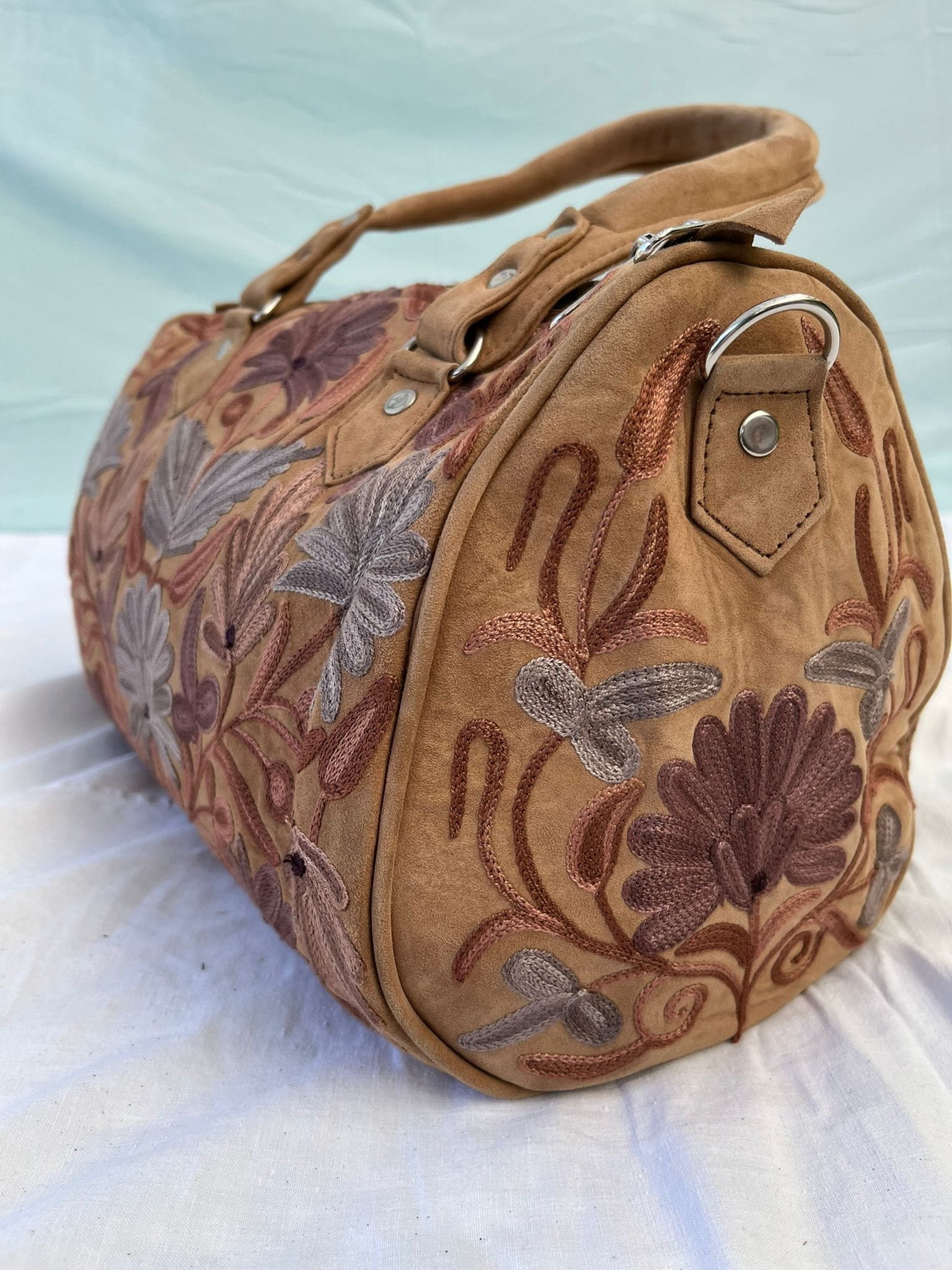 Torebka zamszowa/ kuferek ręcznie wykonana przez lokalnych kaletników w Indiach, Tamilnadu, haft kaszmirski, 100% zamsz naturalny,