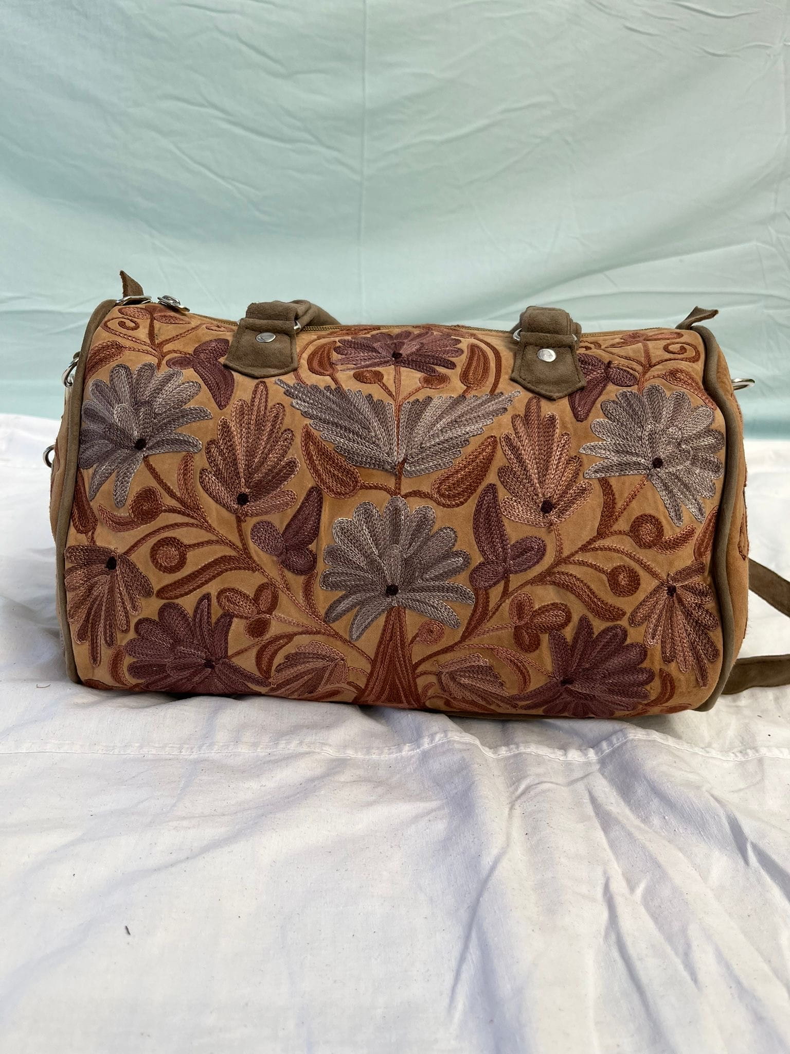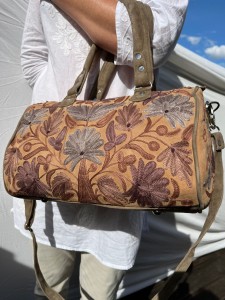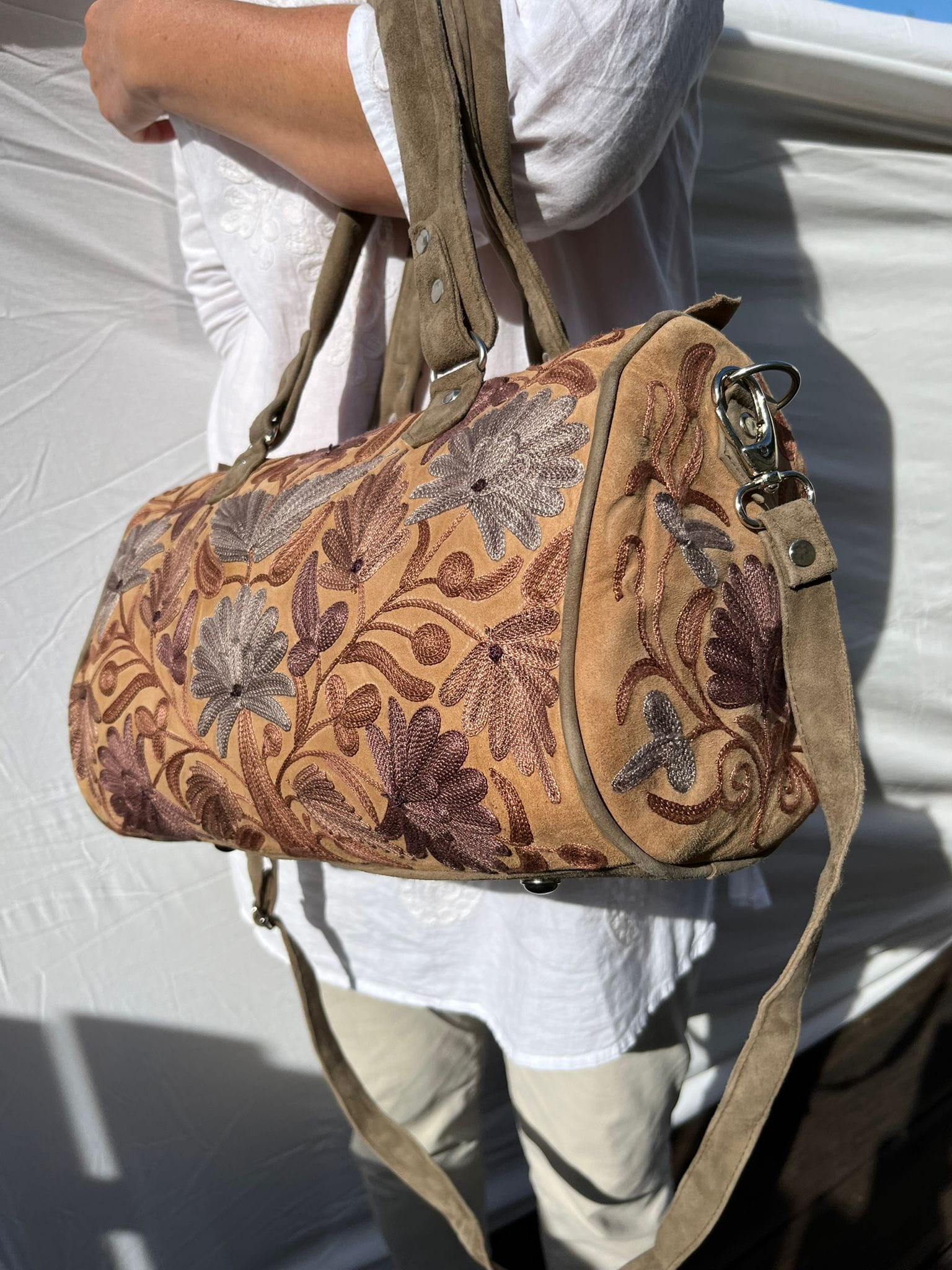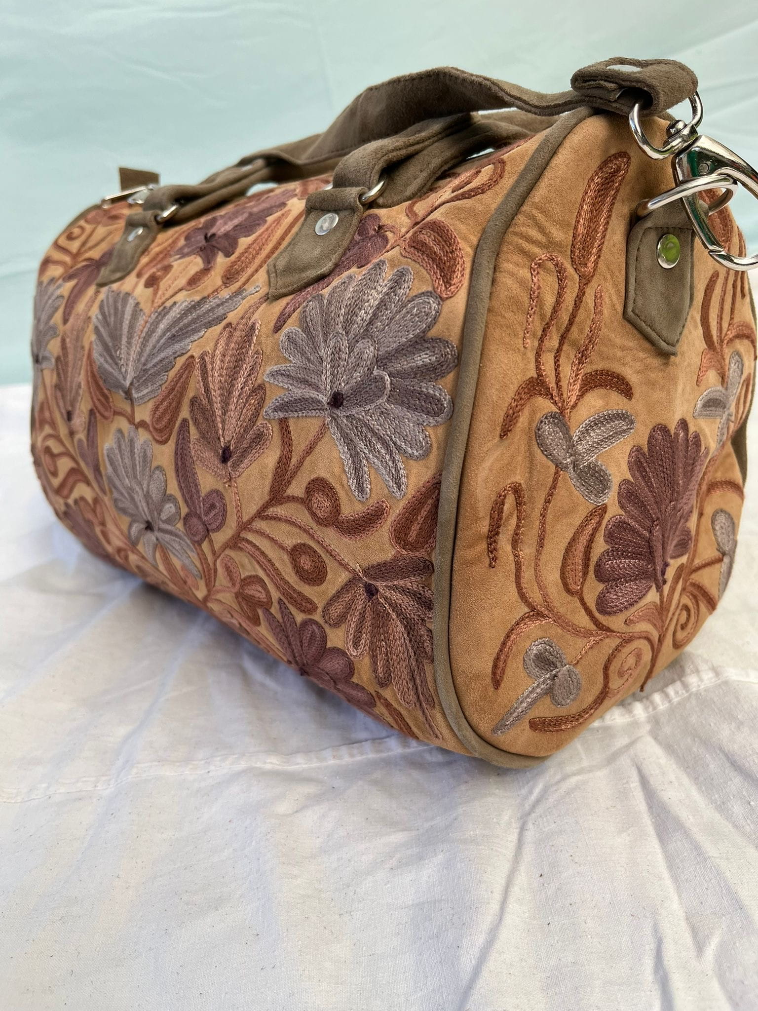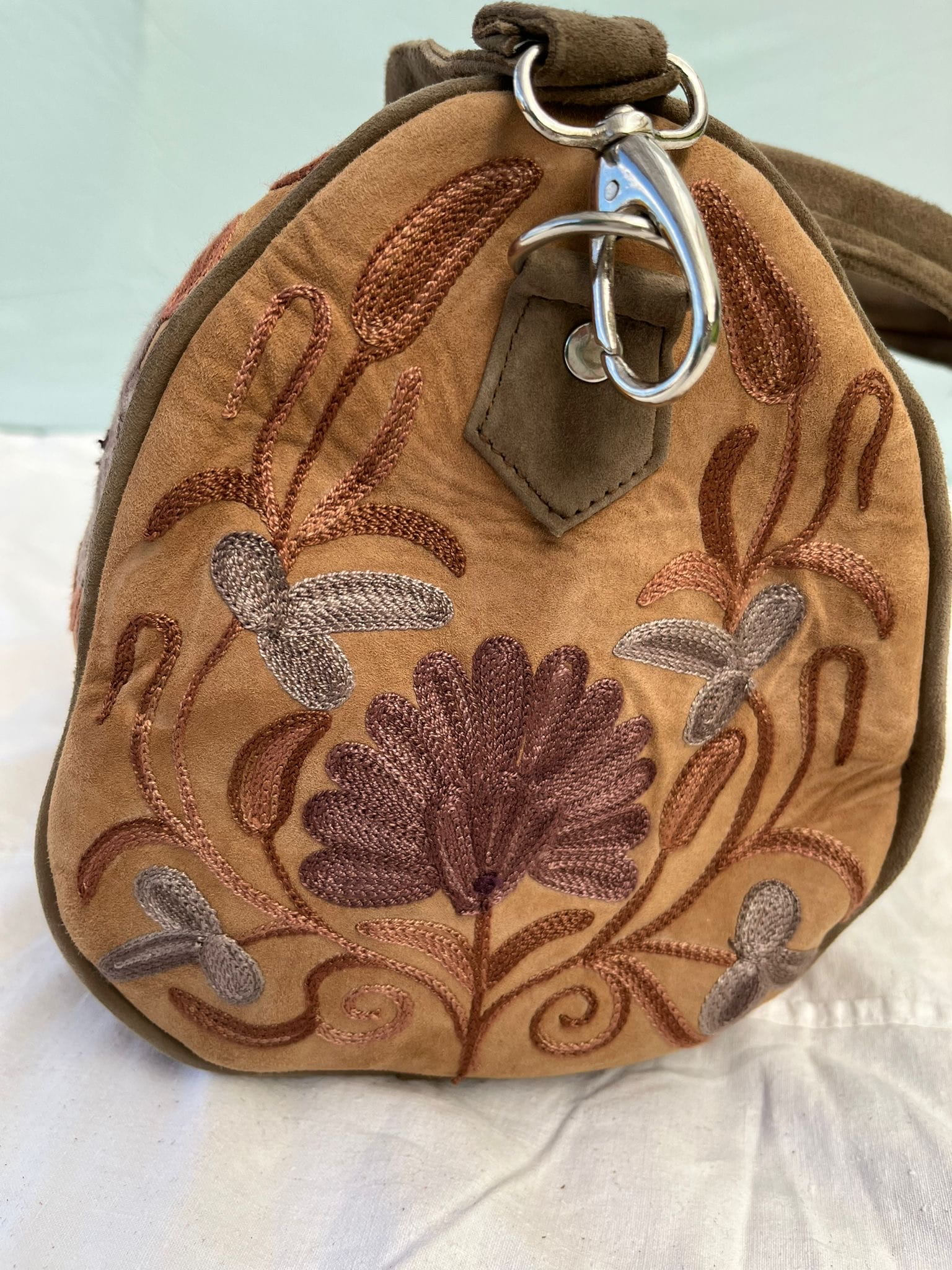 Torebka zamszowa/ kuferek ręcznie wykonana przez lokalnych kaletników w Indiach, Tamilnadu, haft kaszmirski, 100% zamsz naturalny,